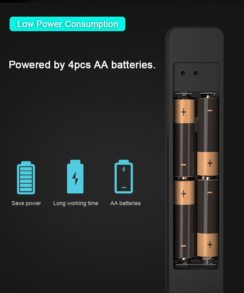 6, The lock is powered by 4pcs AAA batteries, low power consumption, and low voltage alarm;